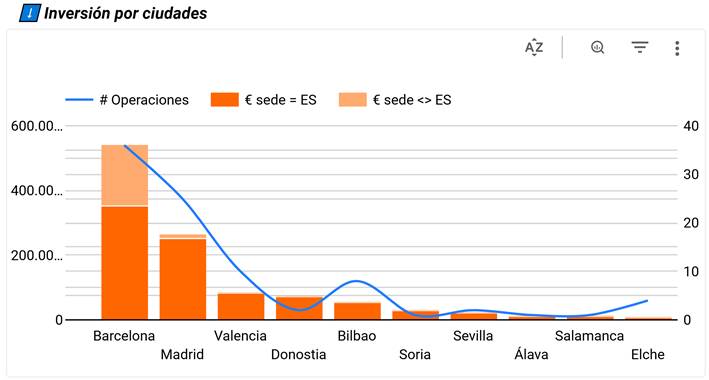 - Distribución geográfica de la inversión: Barcelona lidera la captación de inversión, seguida por Madrid. Soria sorprende situándose en 6 posición.
