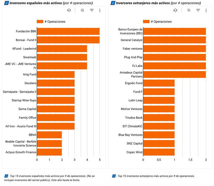- Itnig, Samaipata, Acurio, Startup Wise Guys, Suma Capital y Decelera, que han realizado 3 operaciones cada uno