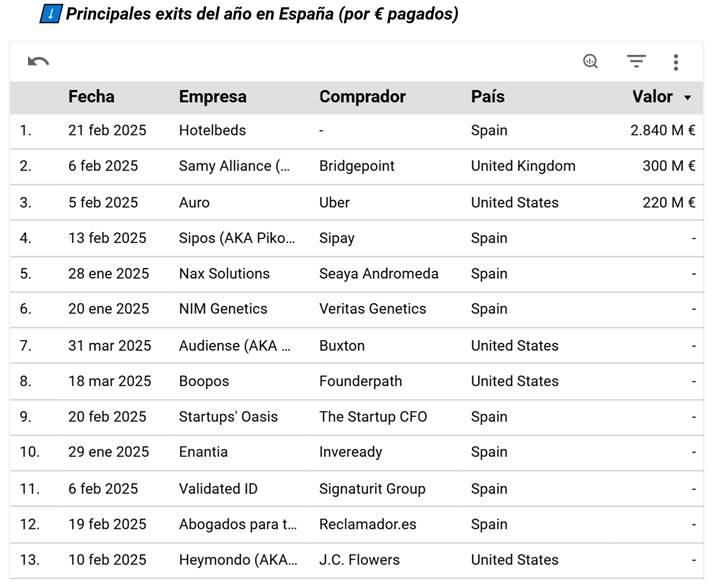 - Desinversiones: Se registraron 13 exits, un 46% menos que en el mismo periodo el año anterior, destacando la salida a bolsa de Hotelbeds.